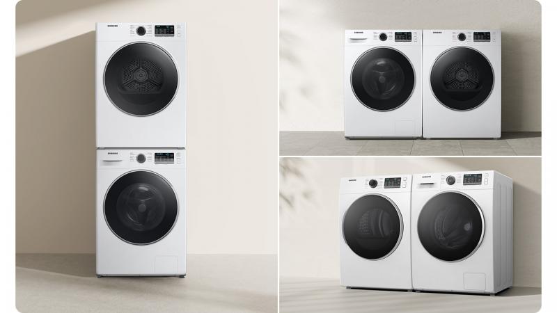 Install your washer and dryer stacked or side by side to fit your space.