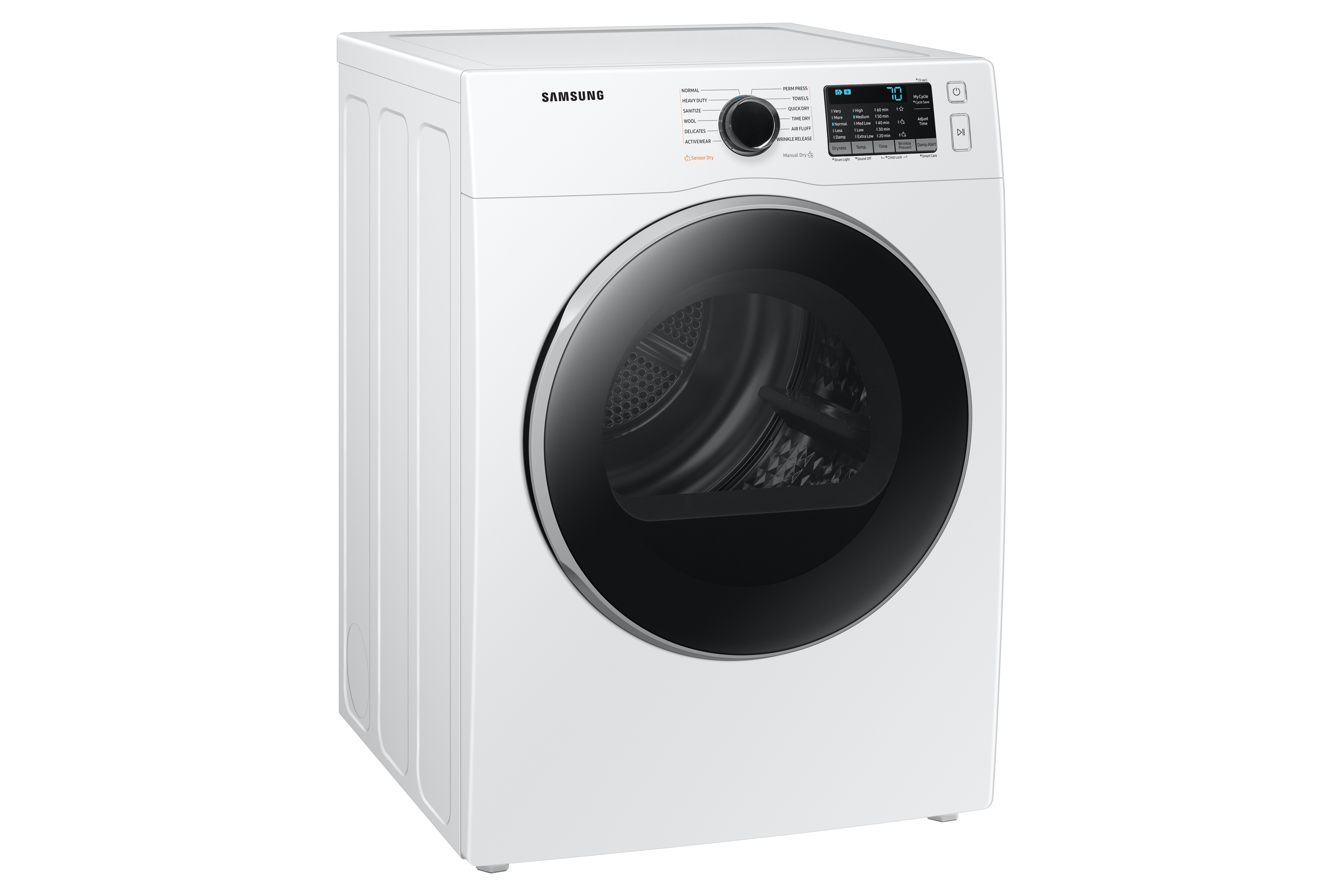 | Option List | Wrinkle Prevent, My Cycle, Damp Alert, Adjust Time, Drum Light(Long Key), Sound Off(Long Key), Child Lock (Dual Key), Smart Care(Long Key) |