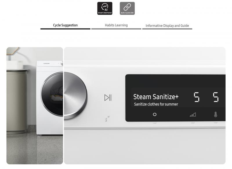 One dial for all your laundry needs. Samsung’s easy to use, AI Smart Dial simplifies your washer’s control panel, learns and recommends your favourite cycles,* and allows you to customize your cycle list, making laundry day a breeze.