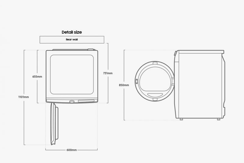 | Option List | Damp Alert, Wrinkle Prevent, My Cycle, Smart Control, Drum Light, Alarm, AI Pattern, Wifi, Language, Child Lock, Vent Blockage Test, Factory Reset |