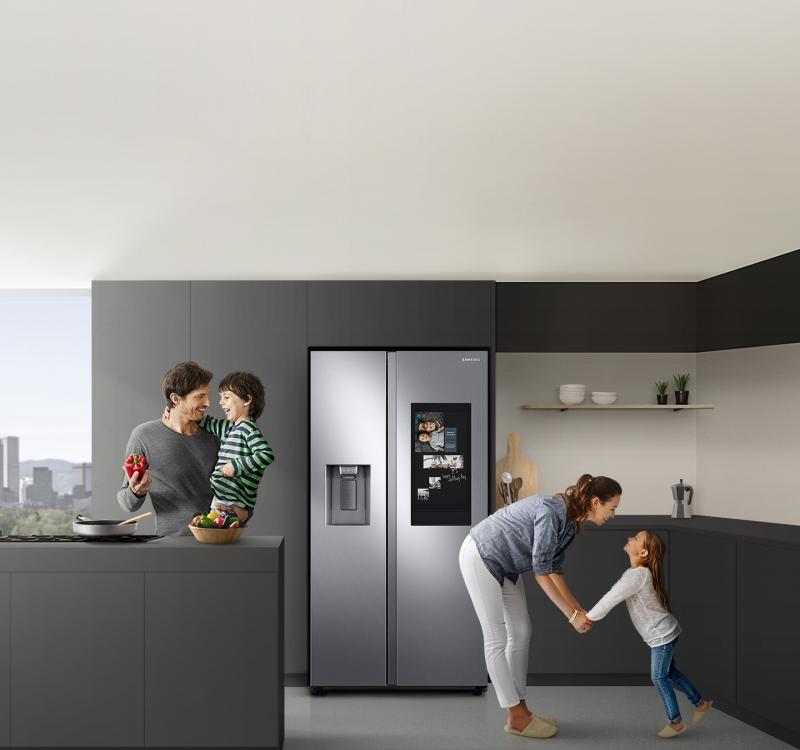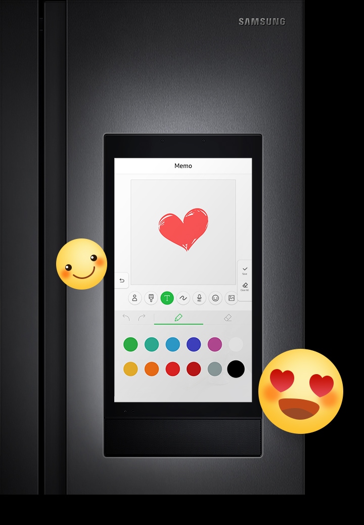 Enrich your family life by sharing news, messages and special moments on the Family Board. Simply use your smartphone and it will synchronize with the Family Hub. You can show photos, post stickers, draw pictures and type or hand-write notes. You can even add a music player.
