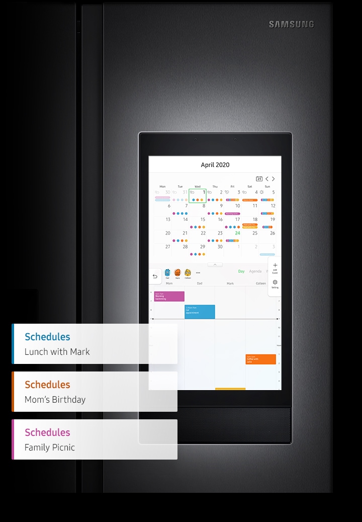 Make sure that you never miss a family event. The Calendar lets you share and check the schedules of family members at a glance. You can update entries on the fridge or from a smartphone and synchronize the schedules with Google and Microsoft 365 calendars.