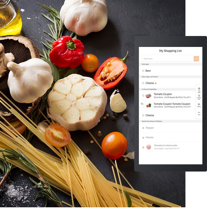 The Smart Recipes App provides delicious recipes with simple on-screen instructions. The Meal Planner App suggests meals to cook, based on your preferences and the food in the fridge. And it lets you create a weekly shopping list.