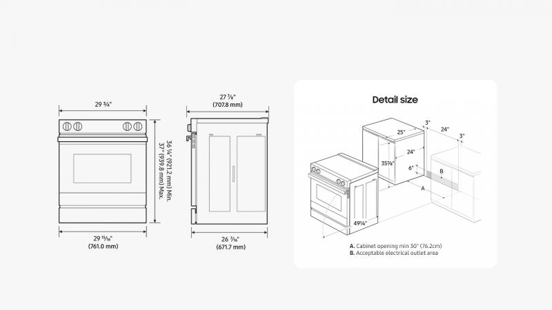 | Net Size (W x H x D) (inch/mm) | (29 15/16) x (36 ~ 36 3/4) x (27 7/8) |