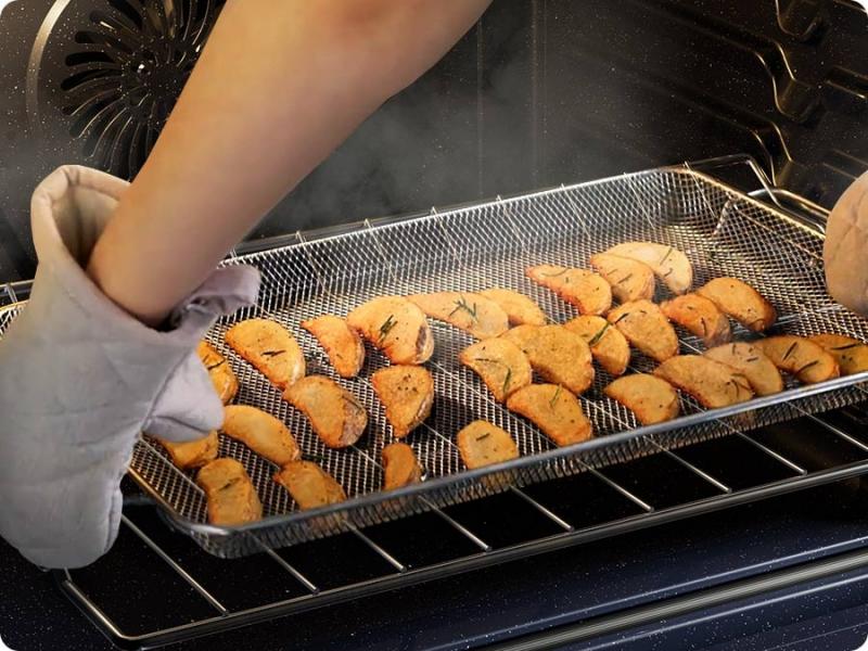 Cook food evenly without it being overcooked or drying out. The Air Sous Vide* system continually senses the temperatures inside the oven and maintains an even temperature for a long period. So everything is cooked thoroughly, wherever it is in the oven, and tastes deliciously tender and juicy.