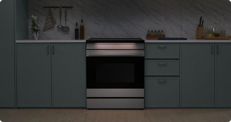 Create a pleasant and relaxing mood, while keeping track of your cooking with a glance. Ambient Edge Lighting enhances your kitchen’s ambiance with a gentle light under the cooktop. The movement of the light shows if the range is on/off, provides status updates and signals when food is ready.