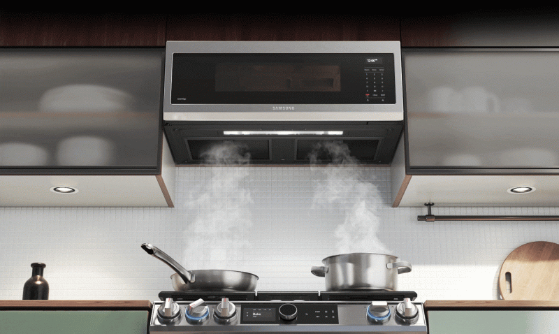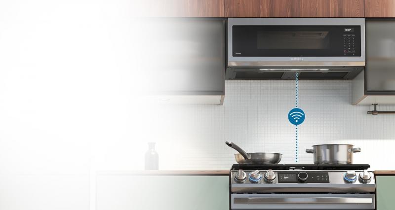 Auto Connectivity function¹ lets you pair the hood with a compatible Samsung range², allowing you to control the hood using the controls from the range³. Turn everything on and off with one touch, so the hood fan and LED lighitng can automatically come on when you start to cook.