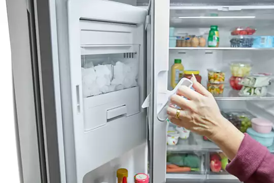 Large Capacity Ice Production makes over 3 lbs of filtered ice every day to keep up with life's everyday demands, from filling coolers for the family to water bottles on your way out the door.
