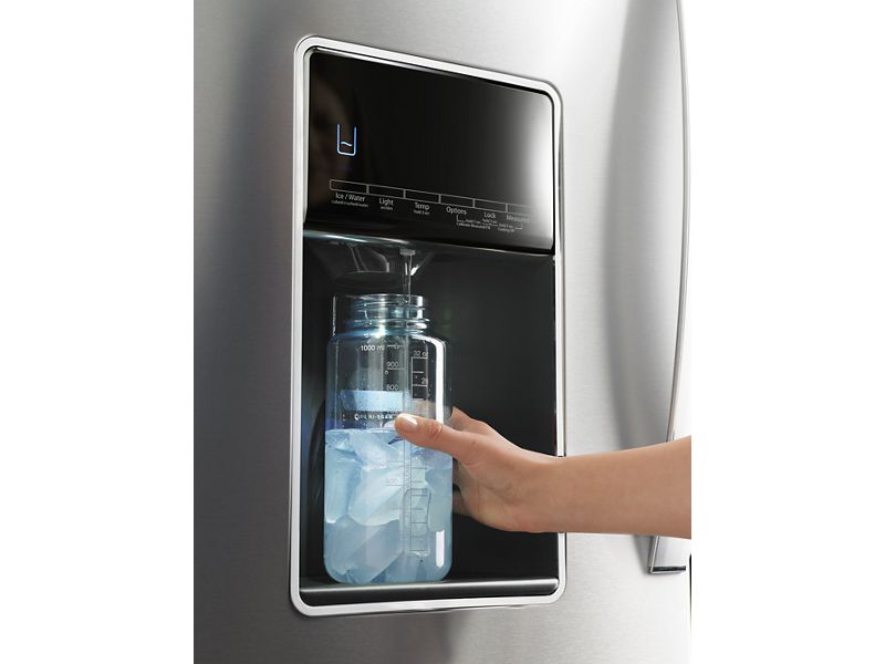 No French Door Bottom Mount Refrigerator in-door ice maker holds more ice. With 3.7lb, your ice maker keeps up with your family.