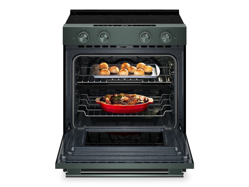 Enjoy a range of possibilities with our most powerful KitchenAid 30-inch Electric Range available. Two Even-Heat™ Hyper Elements offer precise control and the versatility to take on large pots or small pans for various cooking tasks. A WiFi-enabled Smart Appliance featuring Convection Cooking Modes that help you get consistent results with optimal temperatures. A Steam Bake mode works with the included steam rack to provide additional moisture during baking, so you can enjoy Basque cheesecake and other delicious desserts. The range is designed to be personalized with a curated palette of exterior finishes and mixed metal hardware.