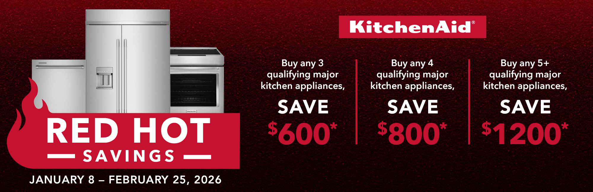 Buy any 3 qualifying major kitchen appliances, Save $600*Buy any 4 qualifying major kitchen appliances, Save $800*